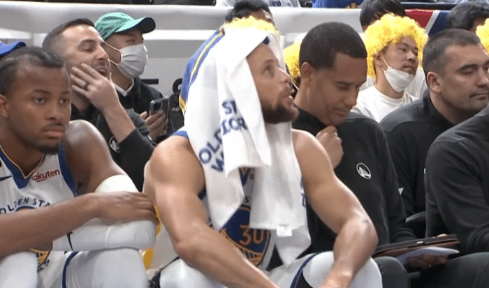 第二节,勇士和奇才僵持不下,期间怀斯曼连得5分(命中三分球),8分15秒库里重新上场,突破上篮得分;之后库里两次尝试三分都不中,甚至连篮筐都没碰到;不过库里迎着八村塁和波神强硬上篮,遭八村塁干扰球,之后篮下换手上篮,打着打着,库里三分再次开张,接连命中两记三分。