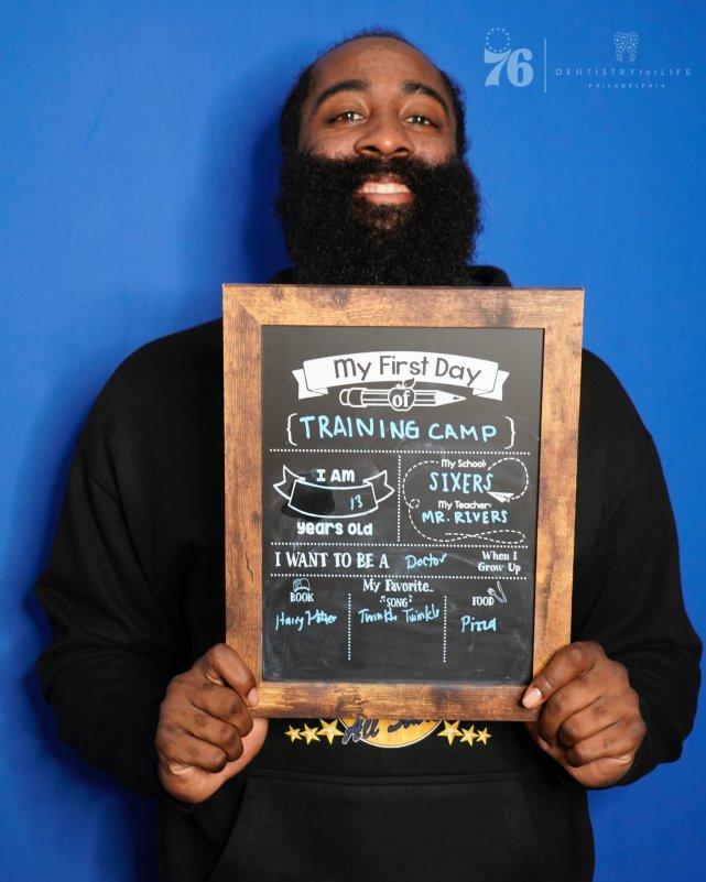 有趣的是76人官网还晒出了媒体日大家举着个人资料牌拍照的一幕。在年龄方面,大家都填了真实年龄,哈登填了自己的NBA球龄(13岁)。大家觉得新赛季的76人能走多远呢?