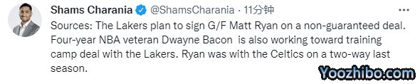 来源:JRS直播网09-26 15:29JRS直播网09月26日,湖人官方裁掉一人后连续签下两名球员,据名记Shams报道,湖人计划以非保障合同签下马特-瑞安,还用训练营合同签德维恩-培根;湖人20人大名单满额,三巨头领衔冲冠。