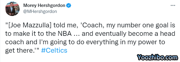 绿军助教马祖拉现年34岁,高中时期三次带队夺得州冠军;2006-2011年在西弗吉尼亚大学打球,2011年结束球员生涯后立即开启执教生涯,2011-13年担任格伦维尔州立大学二级学院担任助理教练,2013至2016年,他在费尔蒙特州立大学二级学院担任助教,2016年离开大学篮球。