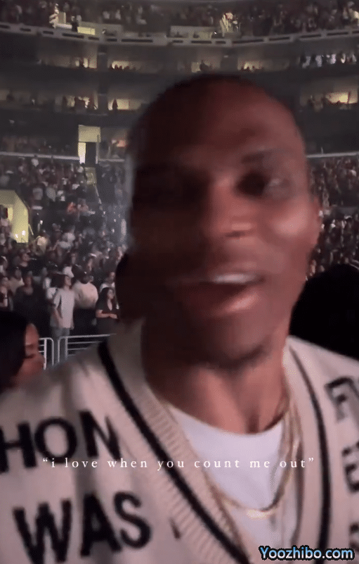 来源:JRS直播网09-18 10:17JRS直播网09月18日,近日湖人球星拉塞尔-威斯布鲁克现身著名说唱歌手肯德里克-拉玛尔在洛杉矶演唱会,在现场,威少满脸笑容,跟随着拉玛尔的现场旋律一起唱着这句歌词:我喜欢你把我排除在外(i love when you count me out)。