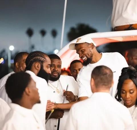哈登开33岁生日派对!杜兰特到场保罗沃尔点赞 76人官方调侃扔蛋糕