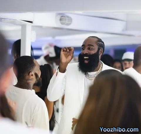 哈登穿着帅气,戴着大金链和墨镜。在好友们的簇拥下,快艇派对开得相当热闹。哈登还把蛋糕丢进海里,引起热议。不少球迷调侃哈登真是下定决心减肥,连蛋糕都不吃了。