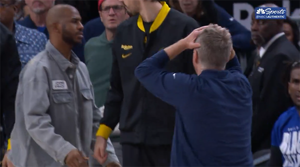 在勇士和快船比赛最后时刻,波杰姆斯基命中续命三分后,科尔和保罗都站在场边示意大伙不要犯规,结果克莱直接犯规送威少上罚球线,克莱无脑犯规后科尔气得怒拍地板,保罗等人也十分无奈,库里伸手想要和克莱击掌却遭克莱拒绝。