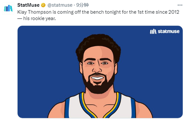 克莱-汤普森沦为替补,这是他自从2012年3月12新秀赛季以来首次替补出战,时隔4358天,连续727场首发的纪录终结。