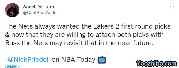 Nick Firedell还表示篮网一直想要湖人的两个首轮选秀权,现在湖人愿意用威少和两个首轮签进行交易,篮网可能在不久的将来重新考虑与湖人进行交易。