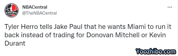 今夏杜兰特申请离队时曾把热火视为心仪的下家,不过热火拒绝交易阿德巴约,再加上篮网要价极高,热火没有能够打动篮网的筹码,因此他们早早退出杜兰特争夺战,而是专注于保持现有阵容备战新赛季。