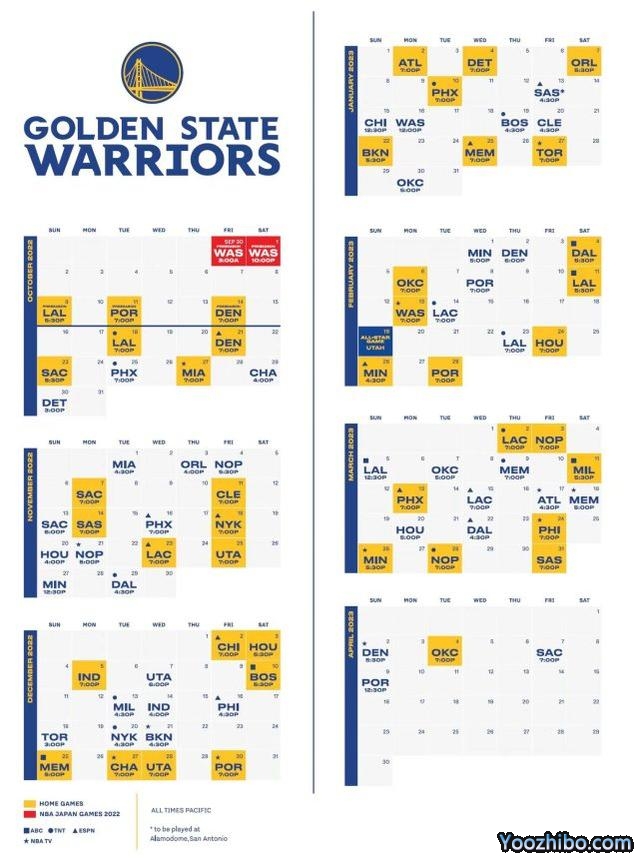 2022-23NBA勇士队新赛季赛程公布: 有42场将全美直播