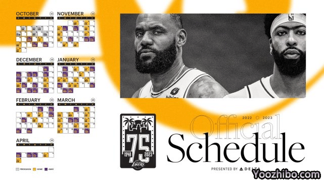 湖人将在全明星赛前打59场比赛,其中28场主场,31场客场。他们将在全明星赛后打23场比赛,其中13场主场,10场客场。