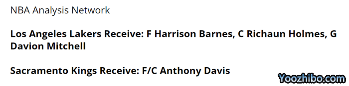 来源:JRS直播网08-14 19:44JRS直播网08月14日讯 自从在泡泡园区拿到总冠军后,湖人在过去两个赛季的表现,只能用糟糕来形容。20-21赛季季后赛首轮被太阳轻松淘汰,而上赛季甚至连附加赛都进不去。自由市场开启后,湖人放弃了原本队内的诸多老将,选择大规模签下年轻人,比如托马斯布莱恩特、特洛伊布朗、朗尼沃克等人,阵容年轻化是湖人在新赛季所做的另外一种尝试。此外威少的交易迟迟没有进展,湖人最多只愿拿出1首轮+1次轮,看起来想送走威少并不容易。在这种情况下,美记邓文尼透露,湖人内部人士想要衡量戴维斯的市场交易价值。对此,美媒《NBA Analysis》专栏记者詹姆斯皮尔西撰文,列出一组交易方案,实话实说,对交易双方包括戴维斯都有一定的好处。