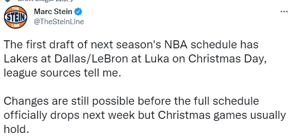 来源:JRS直播网08-13 10:29JRS直播网08月13日讯 ,据名记Marc Stein报道,消息人士透露,联盟初步决定下赛季圣诞大战的赛程将是湖人客场挑战独行侠;在联盟官方下周公布正式新赛季完整赛程之前,这个对阵仍有可能改变。但圣诞大战一般来说将被保留。