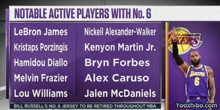 官宣!拉塞尔6号被联盟永久退役成历史首人 詹姆斯领衔现役6号名单