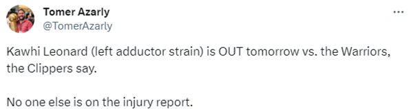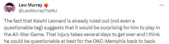 快船记者表示小卡可能缺席全明星赛。