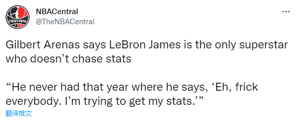 来源:JRS直播网08-09 11:03JRS直播网08月09日讯 ,NBA名宿阿里纳斯公开表示詹姆斯是联盟唯一的一位不追求数据的超级巨星,如此言论引争议;球迷质疑詹姆斯上赛季就是疯狂追求数据。
