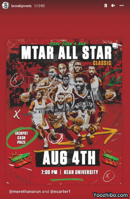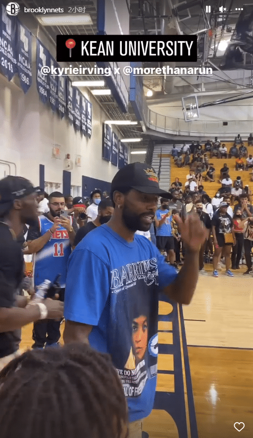 篮网官方不仅晒出欧文参加比赛的宣传海报,海报中欧文身穿篮网球衣;而且晒出欧文身穿蓝色T恤来到比赛现场的帅照,欧文满脸笑容十分开心;篮网官方还晒出欧文打比赛的视频,底角接球轰进三分。