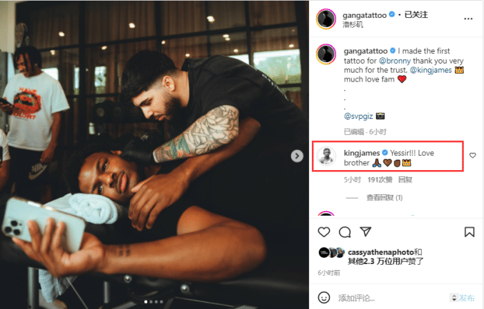 17岁布朗尼第一个纹身完成!纹身现场曝光 詹姆斯发声感谢纹身师