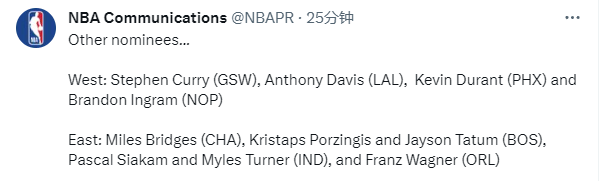 西部:库里、安东尼-戴维斯、杜兰特、英格拉姆