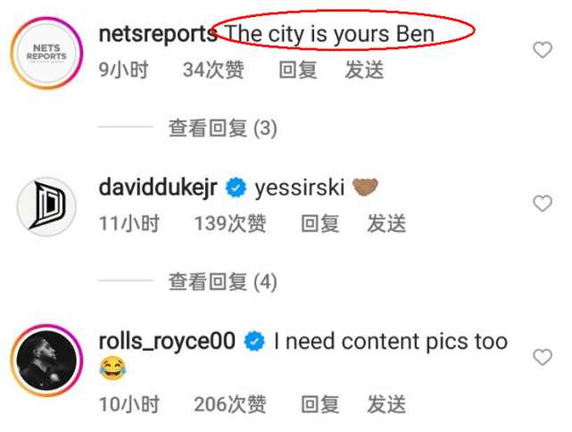 由于伤病原因,西蒙斯被换到篮网后还未打过一场正式的比赛,如今欧文和杜兰特都传出交易流言,有球迷给西蒙斯留言道:“这座城市属于你了。”