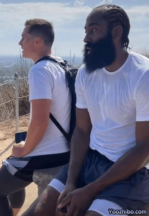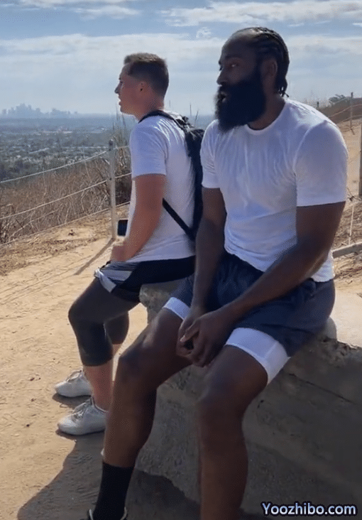 不久前美记晒出哈登在户外进行远足训练,休息期间坐在石椅上,大胡子早已累的气喘吁吁,白色T恤也已被汗浸透;哈登体型保持地很好,貌似变瘦了一些,继续训练备战新赛季,为冲冠总冠军而准备。