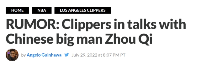 美媒晒周琦快船球衣PS照!有望争留队名额?2米18中锋成潜在对手