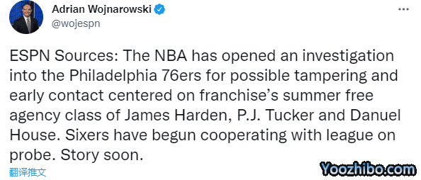 来源:JRS直播网07-30 10:27JRS直播网讯 北京时间7月30日,据ESPN名记沃纳罗斯基报道,NBA已经开启一项调查,调查76人是否存在违规招募和(早于自由球员市场开启时间的)提前接触,主要集中在哈登、塔克和豪斯三名球员,76人正配合联盟的调查,或因违规招募被联盟重罚。