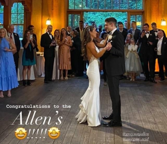 来源:JRS直播网07-26 19:58JRS直播网07月26日讯 ,雄鹿球员格雷森-阿伦正式完婚,他和妻子摩根-里德结识于杜克大学。当时阿伦是杜克大学男篮的球员,而里德是杜克大学女足的成员。阿伦在个人社媒上转发了婚礼的不少照片。不过,雄鹿官方并没有送上祝福,也没有雄鹿队友前来参加婚礼。