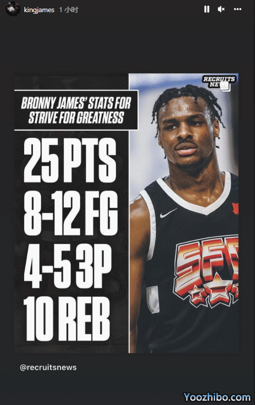 詹姆斯晒出布朗尼的全场数据以及比赛集锦,期间詹姆斯指导布朗尼一幕曝光,老詹示意后布朗尼赶紧跑过来,之后詹姆斯临场给儿子提建议,布朗尼认真听讲;值得一提的是,每年休赛期,詹姆斯都会陪着儿子前往各处打比赛。