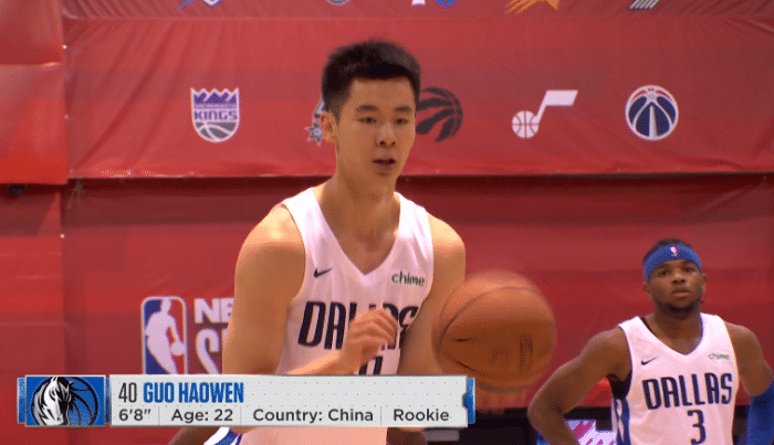 在独行侠和太阳比赛中,因伤连续缺席两场比赛后,郭昊文正式迎来夏联首秀,独行侠开场被太阳打出19-4的超级攻势,第一节13-26落后13分;首节3分44秒,郭昊文替补上场,在场上与队友之间有些生疏,打着打着,郭昊文终于获得得分机会,持球强突上篮打板命中,拿到夏联生涯首分。