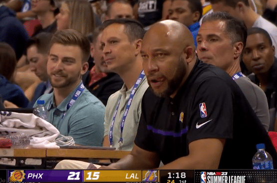 小皮蓬造犯规两罚全中,湖人反超1分,两队的得分并不高。太阳连续拿到5分再次领先,湖人进攻并不顺畅,新帅哈姆在场边亲自指导年轻球员,他也只是现场观战。太阳打出8-0拉开分差,琼斯追了2分,瑞斯打进,太阳24比17领先,张镇麟还未获得出场机会。