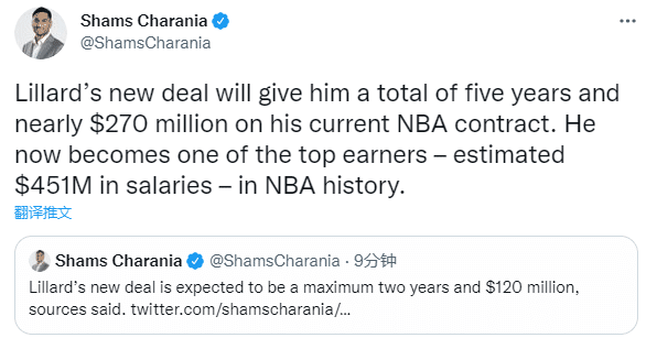 2年1.22亿美元!利拉德将和开拓者提前续约 正式回应不和传闻