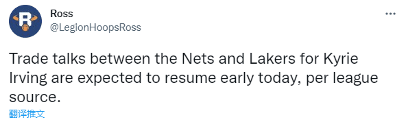 篮网和湖人之间的交易谈判将在今天重启,最快今天达成交易。