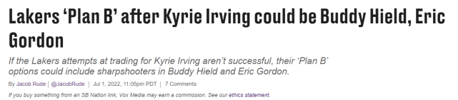 此前报道称,欧文已经是湖人在交易市场上的头号目标,他们得到欧文的机会正在增加,但如果最终得不到欧文,湖人也已经有了新的方案。