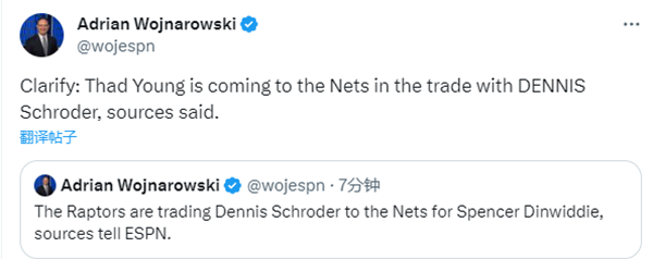 2换1交易达成:猛龙将施罗德+赛迪斯-杨送到篮网 得到丁威迪