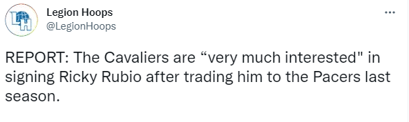 去年12月份,卢比奥不幸惨遭韧带撕裂的重伤,之后被骑士交易到步行者;如今卢比奥将在今夏成为自由球员,骑士有意签回他;21-22赛季,卢比奥在骑士后场发挥很大的作用,为骑士出战34场比赛,场均13.1分6.6助攻4.1篮板。
