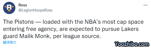 来源:JRS直播网06-27 11:06JRS直播网06月27日讯 ,据美媒Legion Hoops报道,预计底特律活塞将追求湖人后卫马利克-蒙克,今夏活塞是联盟拥有最大薪资空间的球队,大概有4500万美元的薪资空间,而湖人仅能给640万年薪,恐怕蒙克会被抢走。