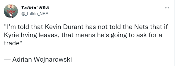 蔡老板态度曝光!名记:杜兰特还没告知篮网 若欧文离队他会申请交易