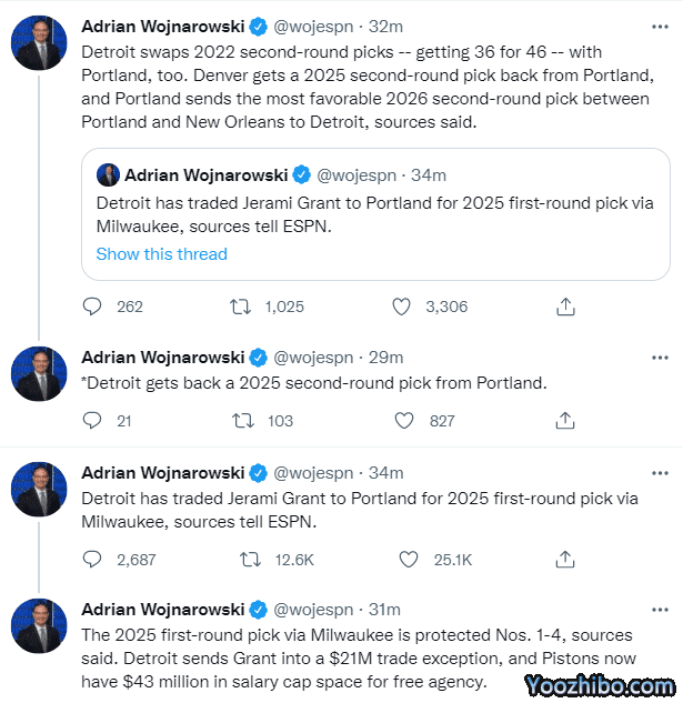 总体来说,两队各取所需,开拓者获得即战力,稳住了利拉德。活塞收获重建的选秀签和空间。2021-22赛季,格兰特场均19.2分4.1篮板2.4助攻。