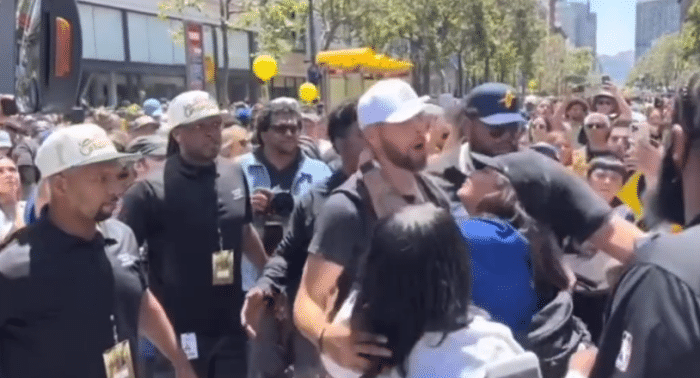 值得一提的是,在勇士夺冠游行期间,库里下车与现场的球迷合影时,一位女球迷居然想要亲吻库里,库里赶紧往后退才躲过被强吻,说实在的,这球迷确实太过分,太不尊重人了。