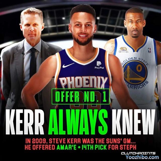 具有讽刺意味的是,第一个试图从勇士挖走库里的人,竟然就是现任勇士主帅史蒂夫-科尔。2009年选秀大会上,科尔是当时太阳的总经理,他希望库里去接班纳什,于是向勇士报价小斯和14号签(最终成为厄尔-克拉克)。科尔承认当时那笔交易非常接近达成,但最终勇士还是决定拒绝。