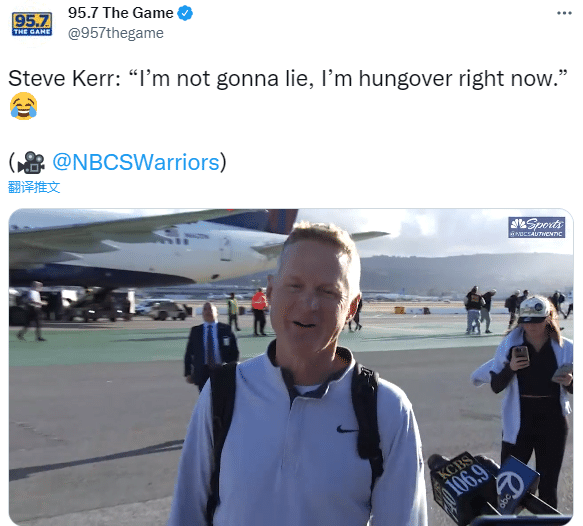 目前勇士全队已经把总冠军带回湾区,格林抱着总冠军奖杯、库里则抱着比赛用球和FMVP奖杯,无数球迷接机欢迎英雄们回家;勇士主帅科尔接受采访时表示:我不会撒谎,我现在仍宿醉未醒。