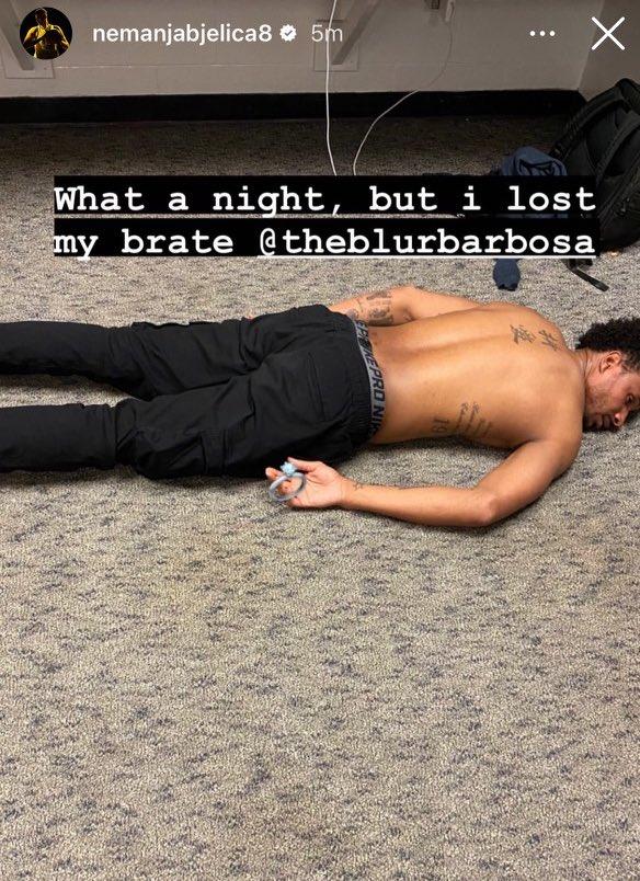 从别利察的动态中可以看出,在返回湾区的航班上,巴博萨一开始还哼着小曲儿,心情轻松,但过了3个小时后,他就赤裸上半身、直接躺在地上不省人事。