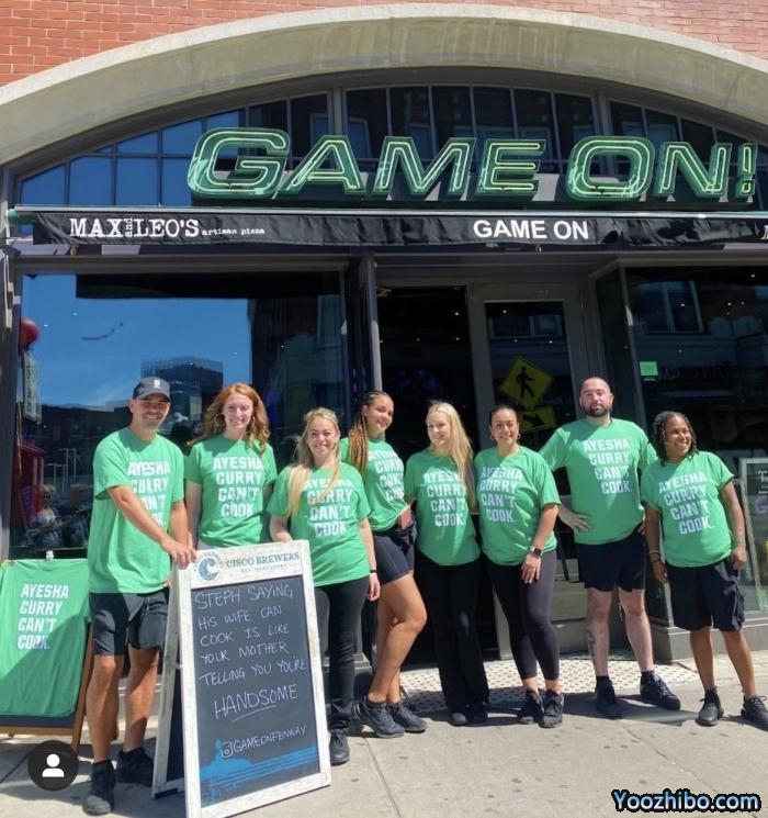 来源:JRS直播网06-16 10:38JRS直播网06月16日讯 ,勇士和凯尔特人G6大战的前一天,绿军球迷再次嘲讽库里的爱妻不会做饭,这一次,凯尔特人多名球迷身穿印有“阿耶莎-库里不会做饭”的特制T恤合影,并在店门口的招牌上写道:阿耶莎-库里仍然不会做饭!库里说他老婆会做饭就像你妈说你很帅一样!