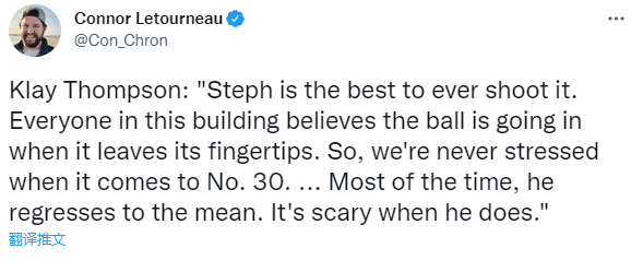 汤普森表示:我只知道他会强势回应的,他是我见过的最伟大的竞争对手之一。库里会打出自己的平均水准,这样的他会很可怕。