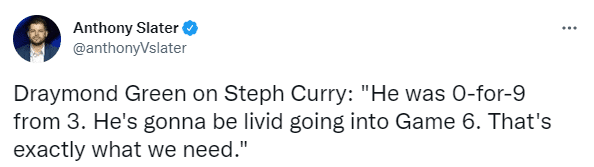格林表示:他(库里)今天三分线外9中0,他在G6的时候一定会带着愤怒打球,这正是我们所需要的。