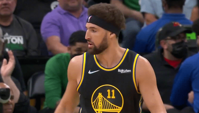 相比起来勇士的开场有些针挣扎,克莱在忙中出错,他在外线持球进攻,犹豫中二次运球违例,确实很尴尬。很快克莱和维金斯外线命中,引领勇士一波8-1的攻击波,扳平比分。