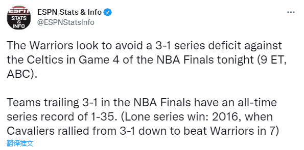 目前勇士大比分1-2落后,他们已经输不起了。