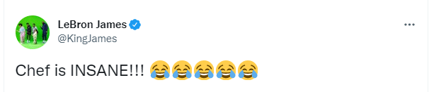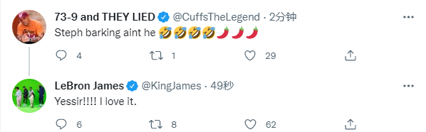 詹姆斯发推:库里太疯狂了。Chef(库里外号)is INSANE!!! (库三疯!!!)