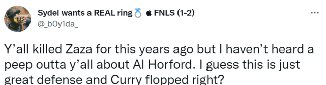 快船记者Tom Azaly晒出了两个回合的慢动作,并为这位球迷给出了解释。“这实际上非常简单。科怀-莱昂纳德后撤步,后仰跳投,扎扎朝着他的脚下连走了好几步。斯蒂芬(库里)是向前跑动出手三分,有一个向前跳的动作。霍福德只是伸手封盖这个球,正好跳进了库里的落地区域。犯规?是的,但跟扎扎那个动作是没有可比性的。”