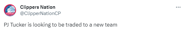Ohm Youngmisuk报道,本赛季PJ-塔克被76人交易至快船,只打了12场比赛,从那以后他就退出了轮换阵容。他一直是年轻球员的导师,但他想打球——他告诉ESPN,他“正在积极尝试被交易”。如果塔克真的离开,快船的装备管理人员会面对一个难题,那就是帮助这位NBA的球鞋之王将他放在装备管理部的250多双球鞋送到另一个地方。