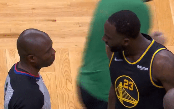 裁判吹罚后,格林冲着裁判咆哮怒吼,似乎质问裁判为什么不吹停比赛。